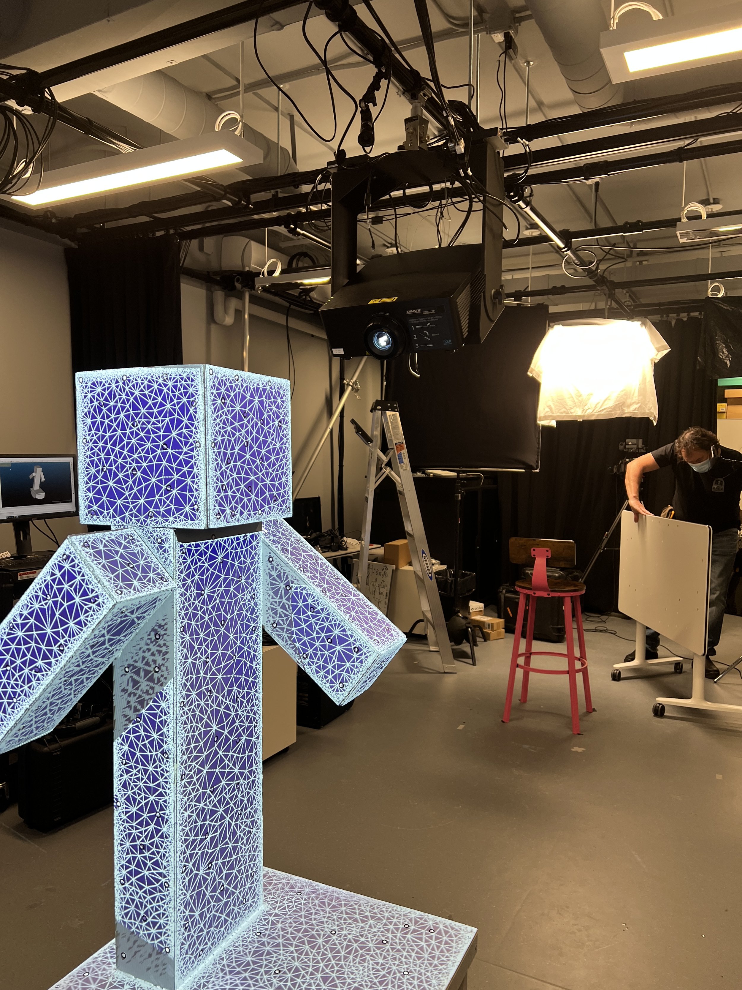 Making hardware adjustments to the projection mapping system (feat. Ching-Yi).